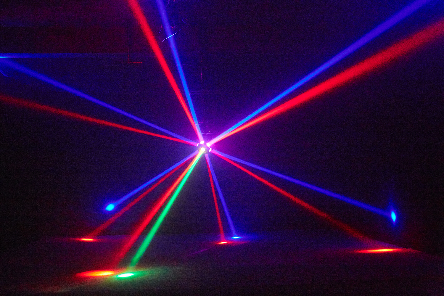 Lámpara 28 Leds de 3W RGBW (7 x color)  / 3 Leds de 10W Blanco / Láser RGB de 50mW x color / 3 tiras con un total de 108 leds pixel.